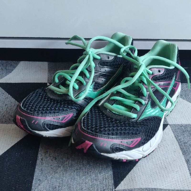T nis de corrida feminino Mizuno Wave Rider X10 verde gua cinza Very well made.