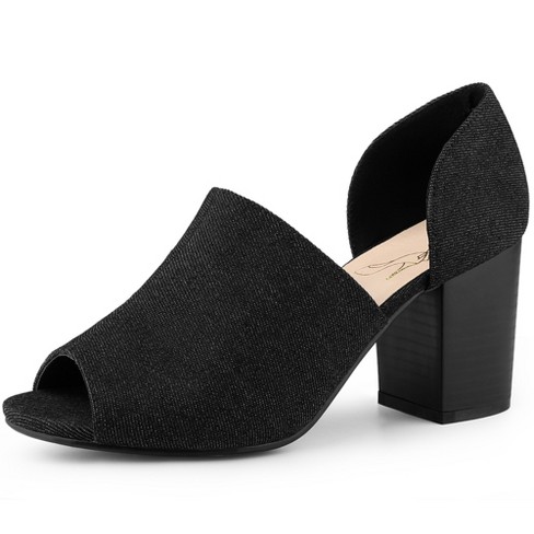 Perphy Denim Open Toe Chunky Heels Slide Sandals Black 7 Very well made.