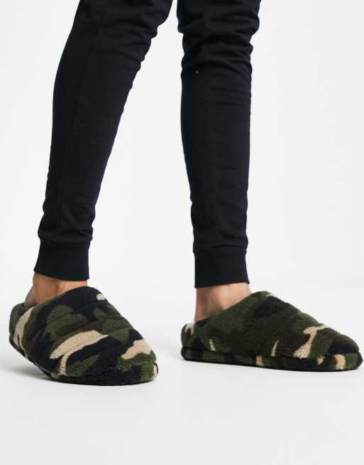 ASOS DESIGN puffer slippers in borg camo print ASOS Very well made.