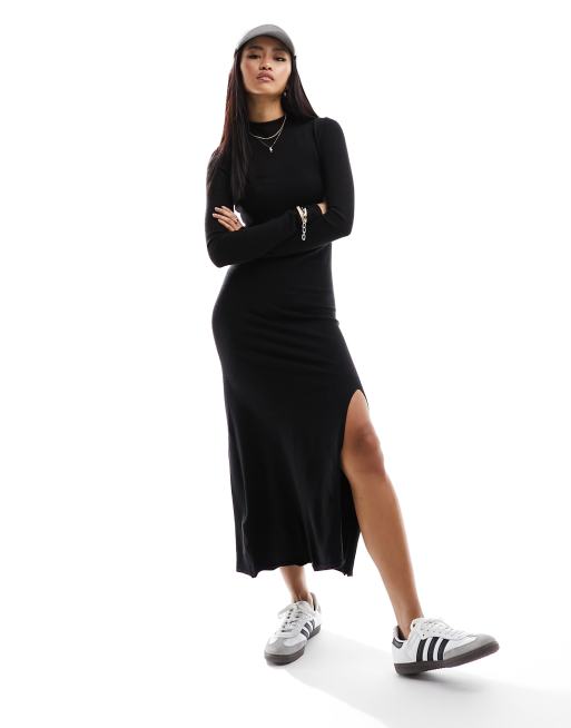 Mango Robe mi longue en maille col montant Noir Very well made.