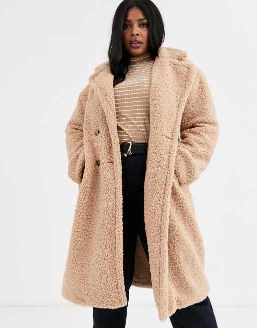 Neon Rose Plus Manteau long effet peluche avec ceinture en Very well made.